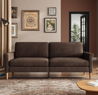 The Vesgantti 75” Brown Couch is a stylish and comfortable loveseat that perfectly blends mid-century modern design with luxury. Ideal for smaller spaces, this 3-seat sofa is perfect for living rooms or bedrooms, offering a cozy spot for relaxation. Its elegant brown upholstery not only looks sophisticated but also feels luxurious, making it a chic addition to any décor. This couch combines quality, comfort, and contemporary style, making it a must-have for those seeking both functionality and elegance in their furniture